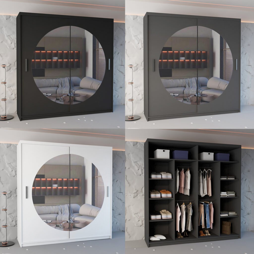 The BATUMI WARDROBE blends contemporary style with exceptional functionality, offering a sleek and practical storage solution for modern bedrooms. Featuring smooth-gliding mirrored doors and a fully customizable interior, this wardrobe maximizes space while maintaining a clean, sophisticated aesthetic. Crafted from high-quality materials, the BATUMI WARDROBE delivers both durability and timeless elegance, making it the perfect choice for any home.