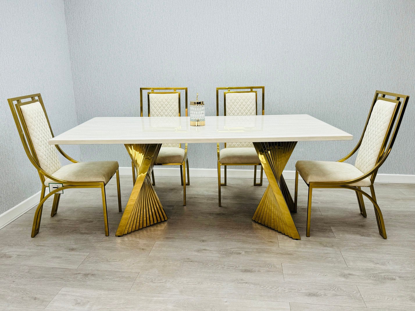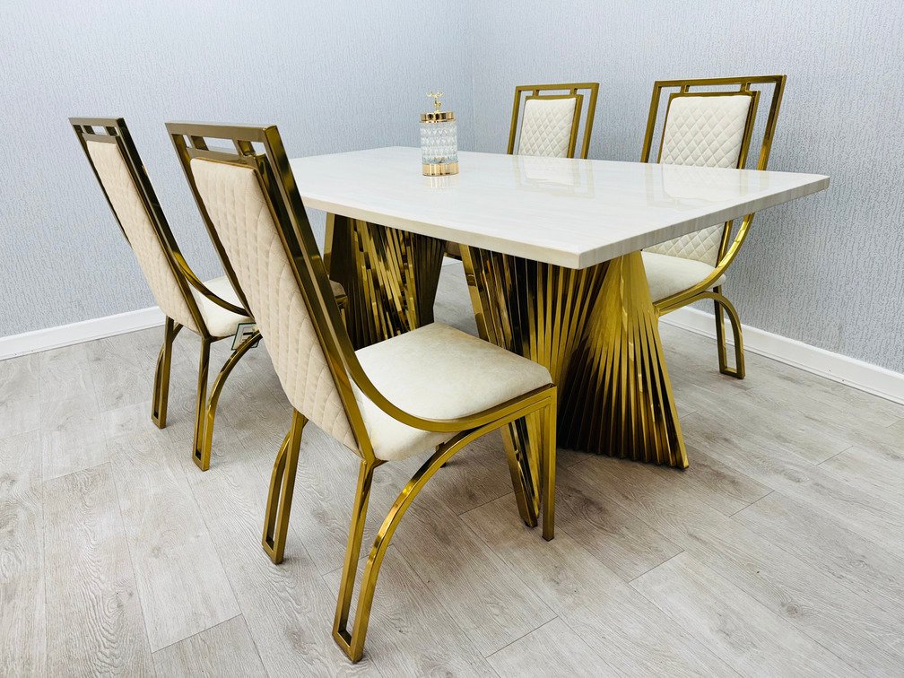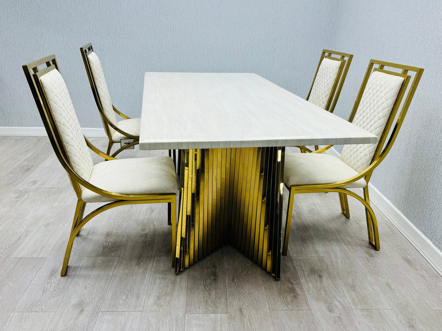 The Ravello 180cm Marble Dining Table is the perfect blend of elegance and durability, designed to elevate any dining space. Available in two striking finishes – Black & Gold Marble and Cream & Gold Marble – each table is supported by a strong gold metal frame, adding a touch of luxury and stability. With its generous 180cm length, it’s ideal for family dining or hosting stylish dinner parties.