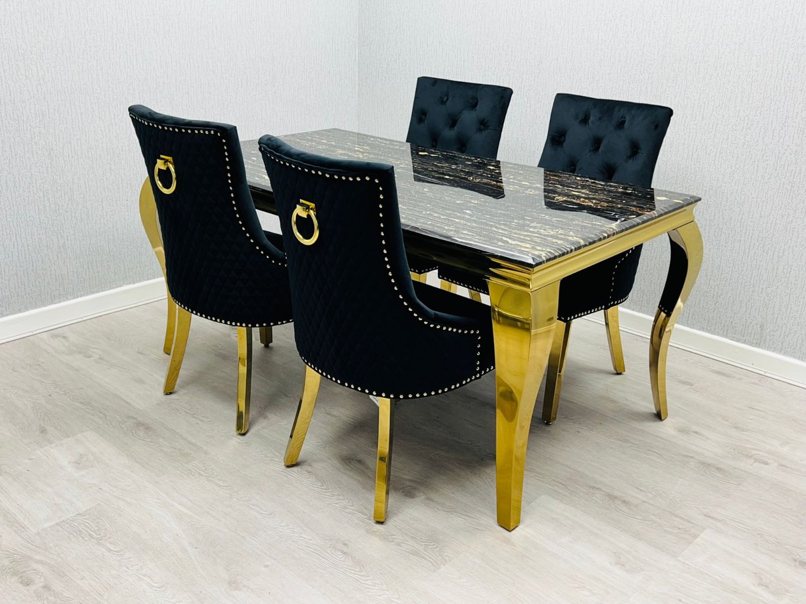 Sofia Black & Gold Marble Dining Collection with Victoria Chairs