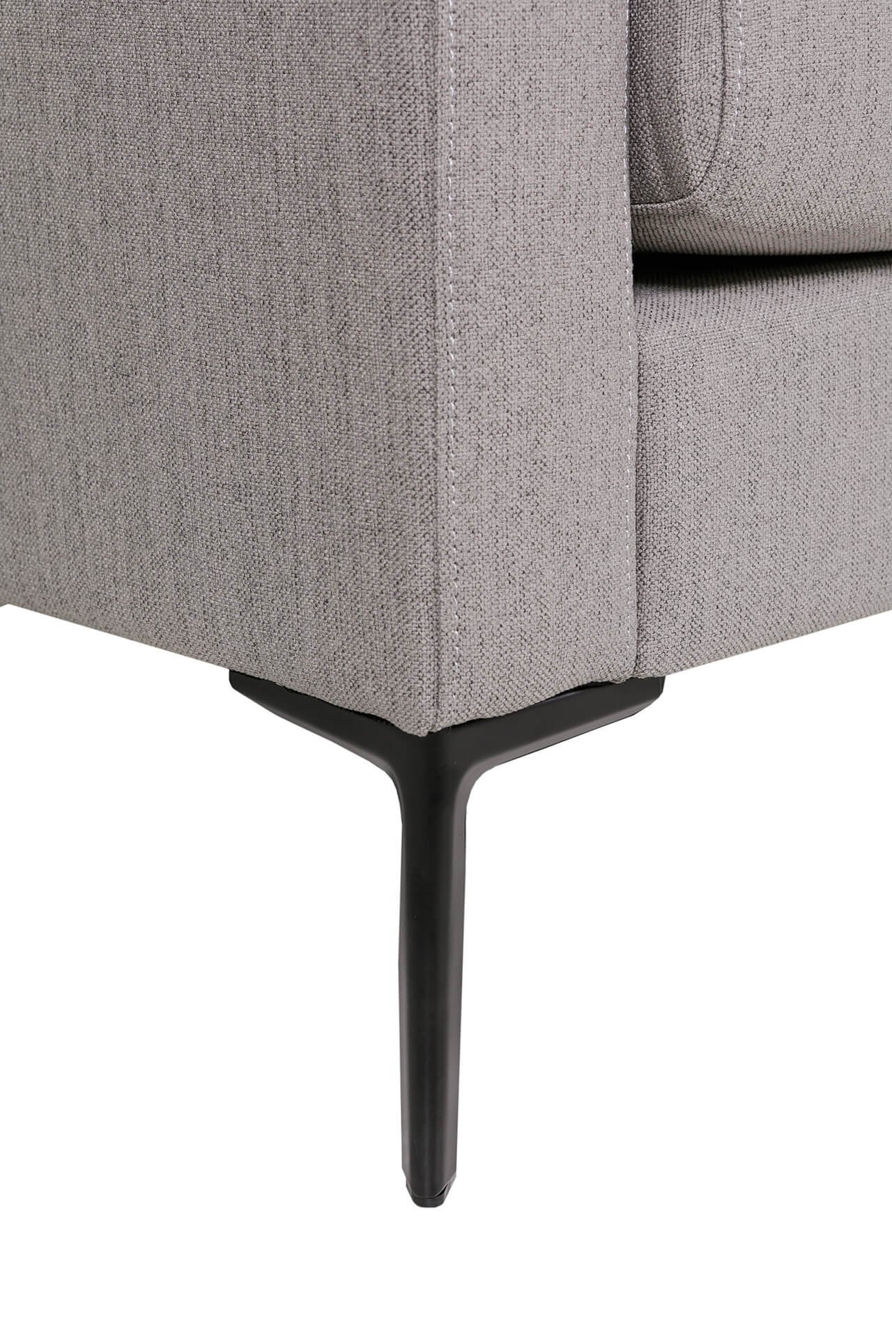 Foam and spring seat, plywood frame, woven textured poly fabric, black powder-coated metal legs